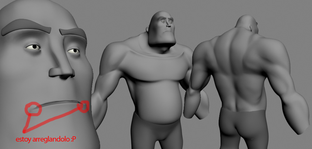 Quieres decir que le marque algún músculo más por delante o alguno menos por detrás o, es que como esta gordo el tío pues tampoco puedo regalarme con los abdominales, así entonces poca cosa más queda, sólo marcarle los pectorales en plan bien en plan 5 músculos en vez de uno a cada lado y que se note la diferencia entre estos 5.