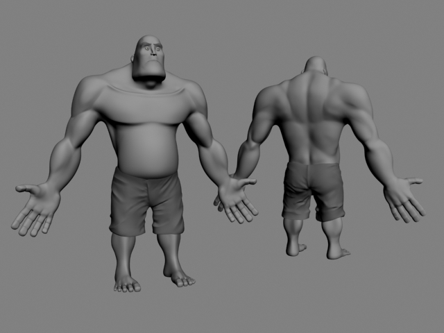 No me cuadra mucho que el torso por delante esté tan estilizado, y por detrás se marquen todos los músculos. ¿o es que vas a rellenarlo también por delante?