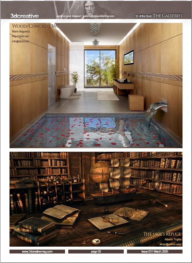 La cuestión es que hace unas semanas colgué una imagen, el refugio del sabio, y tenía sus defectos, la gente muy amable me ayudó y la mejoré, con los cambios me la han publicado en la revista 3d creative de marzo. La que lanzan los de la 3dtotal. Todavía no me lo creo.