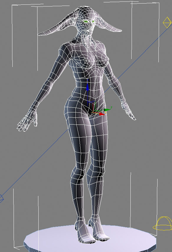 Muy chulo. Enhorabuena por terminarlo (de eso se trata). Yo emplearia esos polígonos que te han sobrado (el límite no estaba en 9000?) para redondear más algunas zonas en donde se notan demasiado los polígonos (el culo, los muslos).