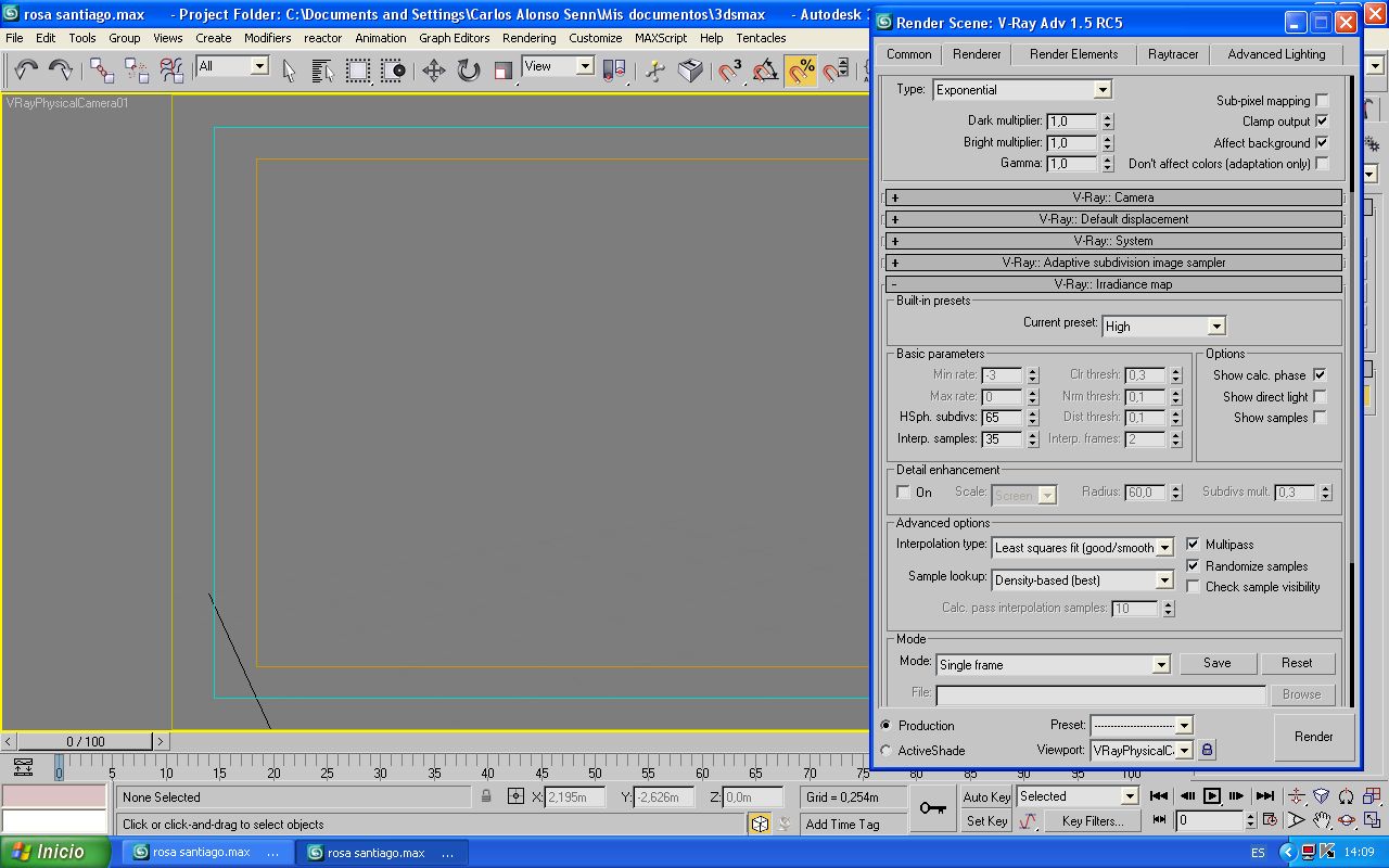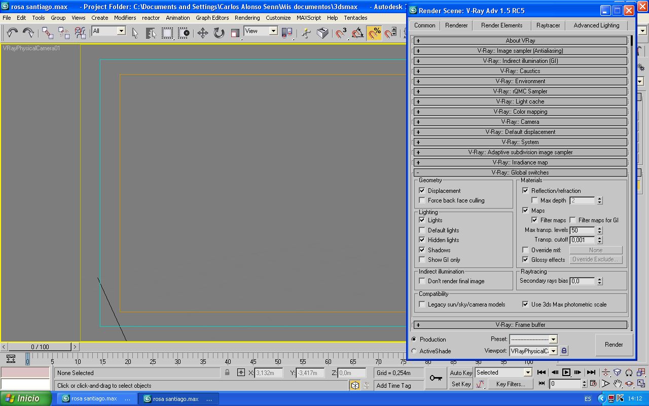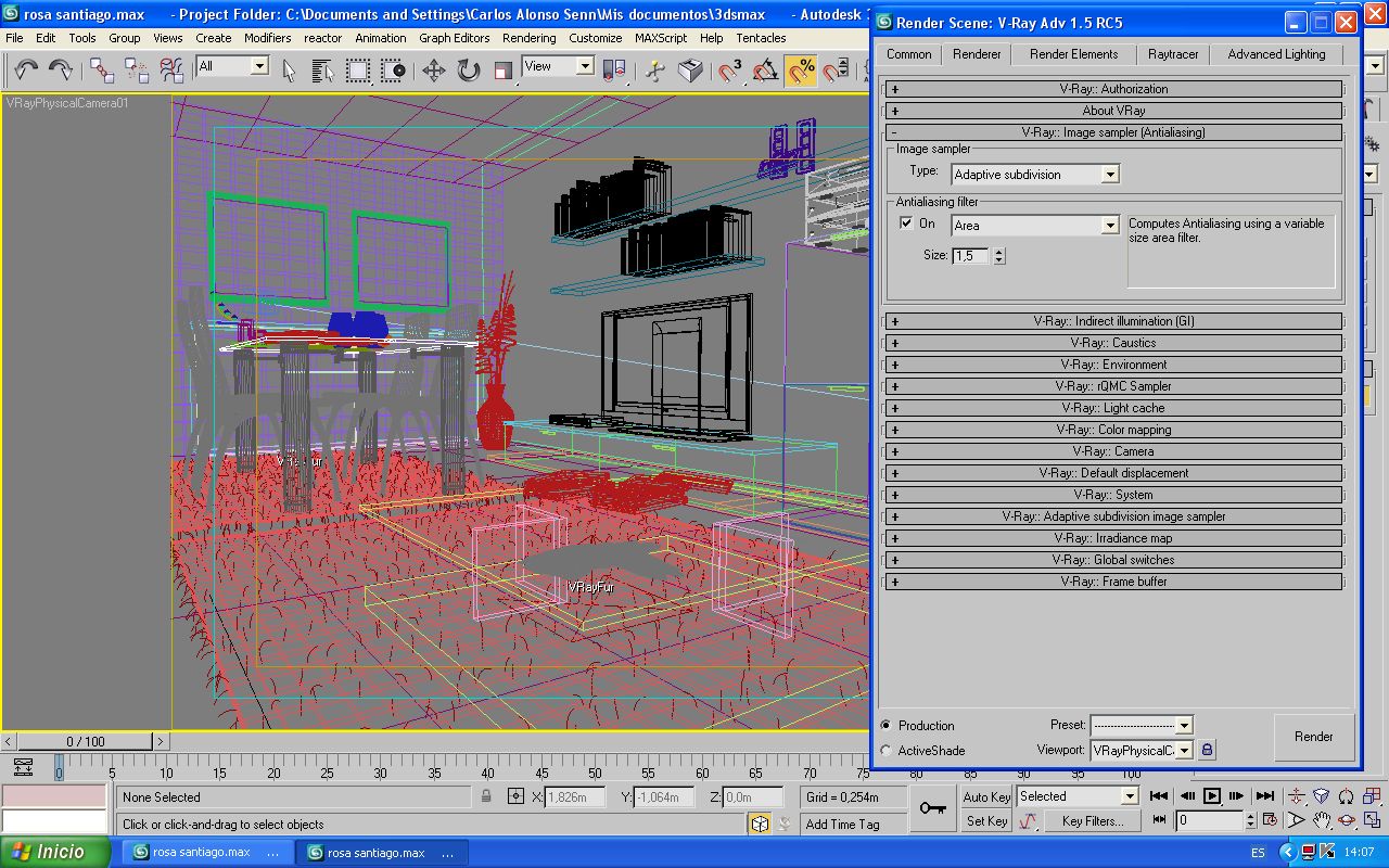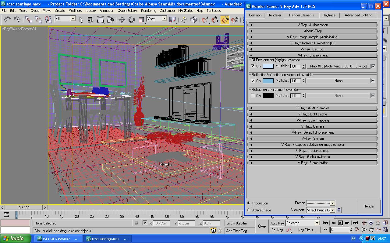 Hola de nuevo a todo el foro. Hacía tiempo que no me dejaba ver por aquí. Estoy con un interior en el cual tengo que colocar muchos objeto de reflexión como cromado. Los tiempos de render han ido aumentando según iba colocando objetos de este material. Quisiera pedir ayuda a alguien para que me ayude a estabilizar estos tiempos. El último render tardo 6 horas. Trabajo con 3dsMax 2008+ Vray 1.5 rc5. Tengo colocadas 3 varylight con 15,8 y 6. Y una Vray Physical Camera. Os dejo el último render, con los cristales lacados en negro, pero el render definitivo que estoy haciendo, tiene los cristales lacados en blanco. Un saludo de nuevo a todos y muchas gracias.