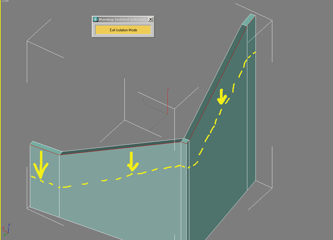 Estoy modelando en 3dsmax, y quisiera saber cómo puedo hacerle un offset a una hilera de Edges (vean la figura adjunta), es decir quisiera tener esa hilera, digamos, 90cm más abajo, si hago connect Edges la hilera no quedará alineada como la de arriba, quisiera que sean perfectamente paralelas, también trate haciendo un extrude Edges con 0 de altura y 90cm de ancho de base y si funciona, pero no queda perfectamente paralelo, las aristas se mueven.