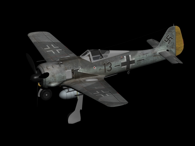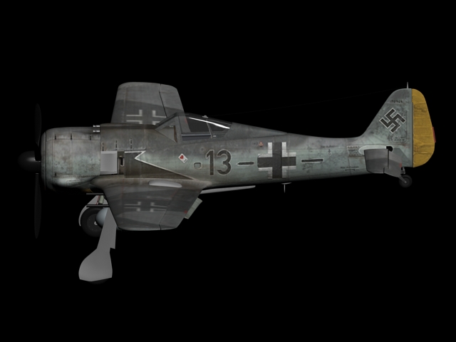 Aquí con algunas texturas del black 13 del oberstleutnant joséf ¨pips¨ priller. Del jg 26, uno de los pocos aviones que, atacaron durante el desembarco aliado del 6 de junio de 1944.