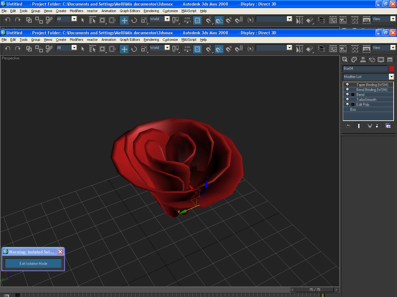 Mientras he estado modelando la rosa un poco, haciendo un pétalo y ir copiando y modificando, antes de leer esto último estaba a punto de hacer algo con helpers que seguían un Path constraint, pero todavía no lo he sacado.