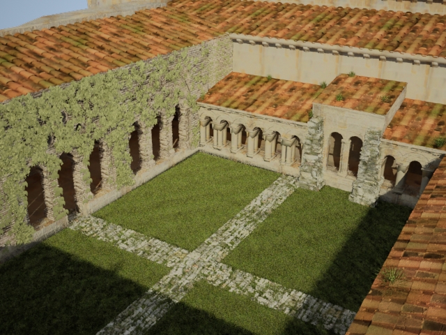 Estoy de acuerdo contigo en todo lo que me dices, os pongo una vista de un nuevo material, de la página que me pasaste (muy buena por cierto), y trabajo ahora en la enredadera siguiendo tu consejo, el tema de la sombra dentro de los arcos no tengo mucha idea de cómo aclararlo, si bien pongo fuente de iluminación ahí o toco algún parámetro que afecte a esas sombras en concreto, no lo sé, de todos modos tocaré todo lo que pueda, el tema es que la máquina que tengo no me deja sacar ahora los renders y se cuelga cada dos por tres, es de hace cuatro años y tengo que tirarle agua cuando empieza a salir humo, te dejo la imagen para que me digas que te parece, y a ver si dejando descansar el aparato se repone, es lo que pasa por ser pobre y no tener dinero para comprarse uno de estos ordenadores que hasta te cocinan y todo, en fin, seguiremos intentando mejorar el proyecto, saludos.