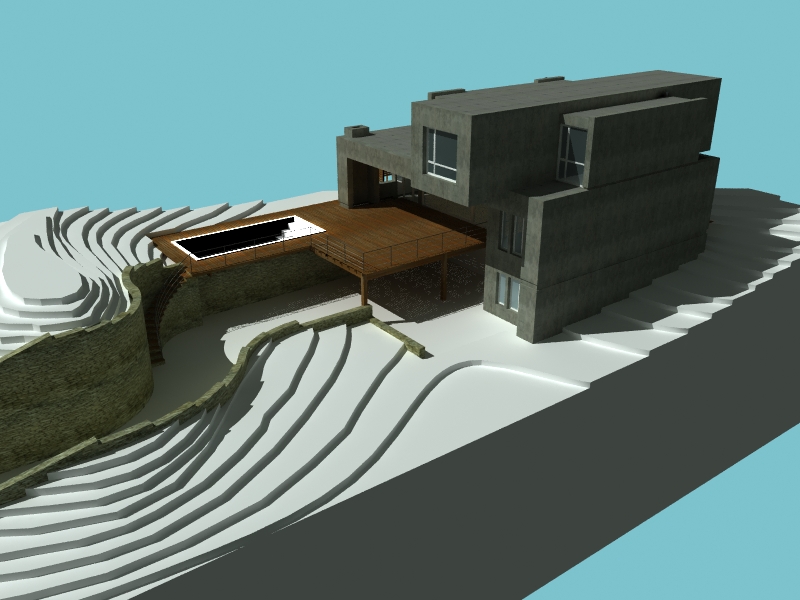 Saludos espuyade2 y bienvenido, obviamente quieres mostrar una maqueta, me parece bien desde el punto de vista de practica, solo que le falta ambientarlo, imagino también que es el proceso, otra cosa los volúmenes de la topografía están muy poligonizados, resuelve eso. Saludos y bienvenido.