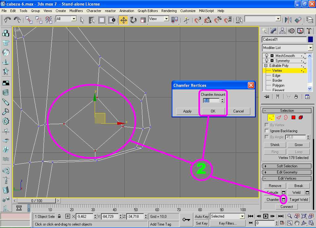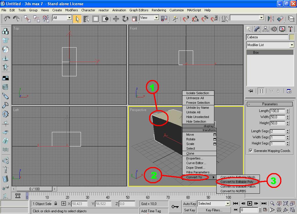 1, abra la ventana modif. Y seleccione la caja dando clip sobre ella.