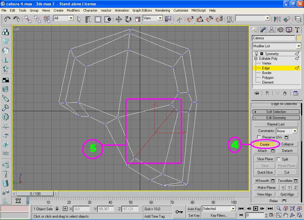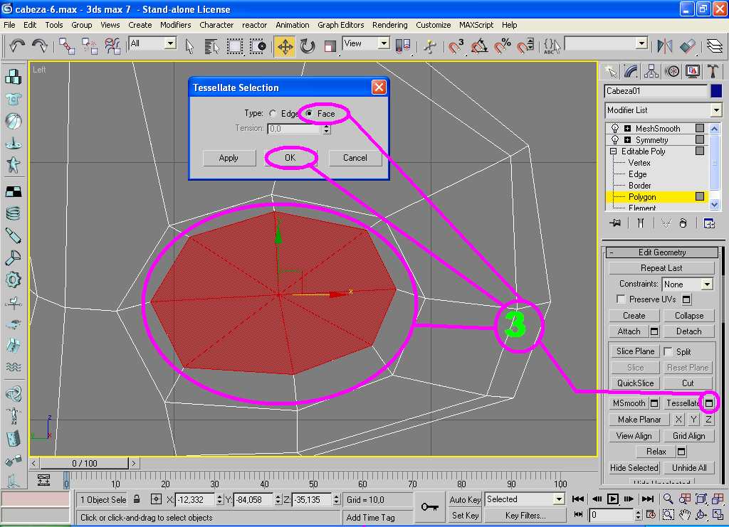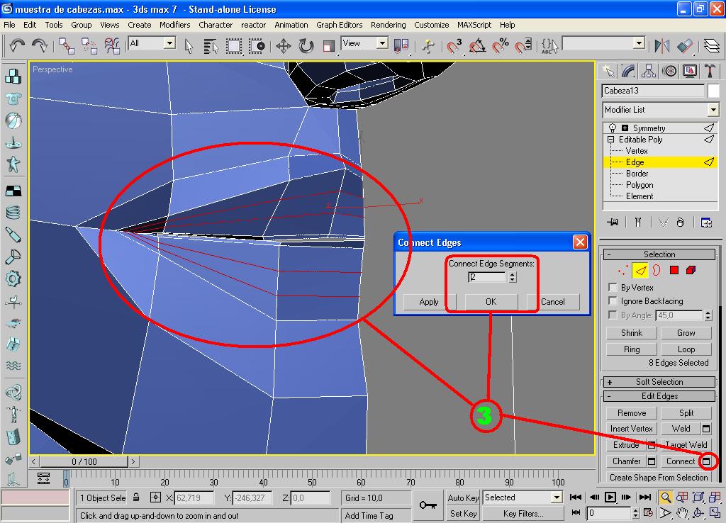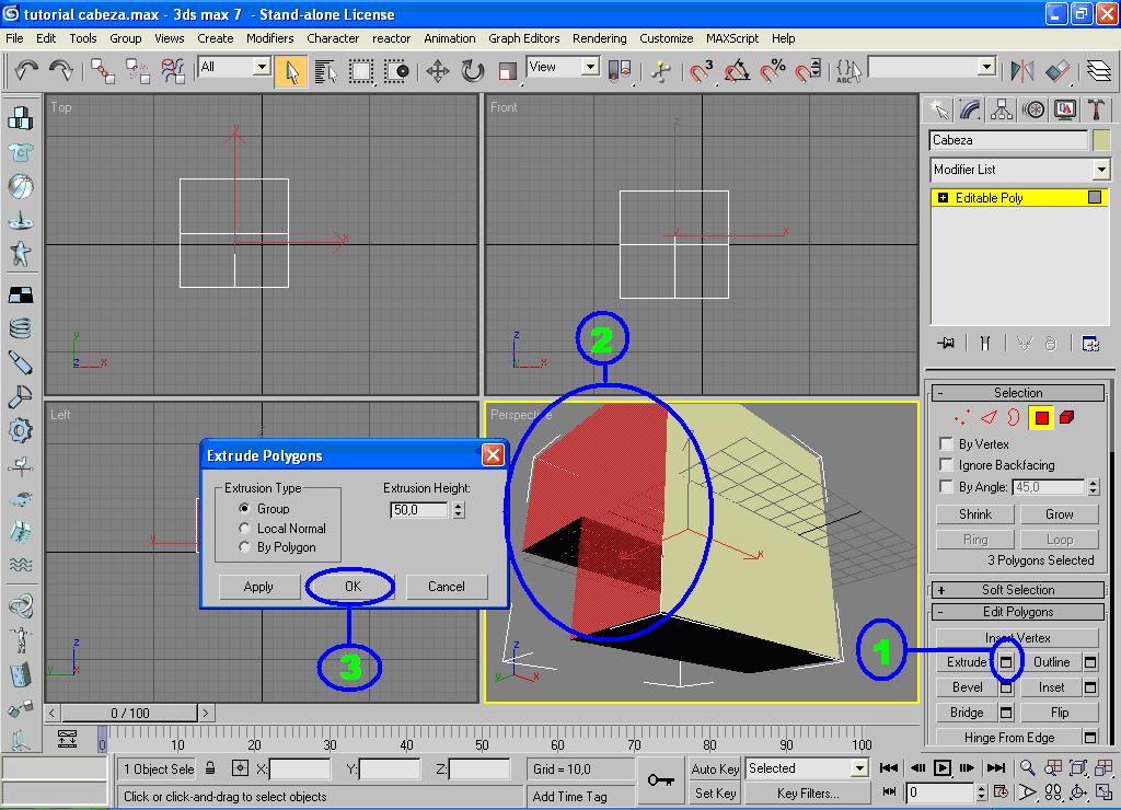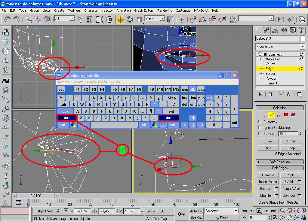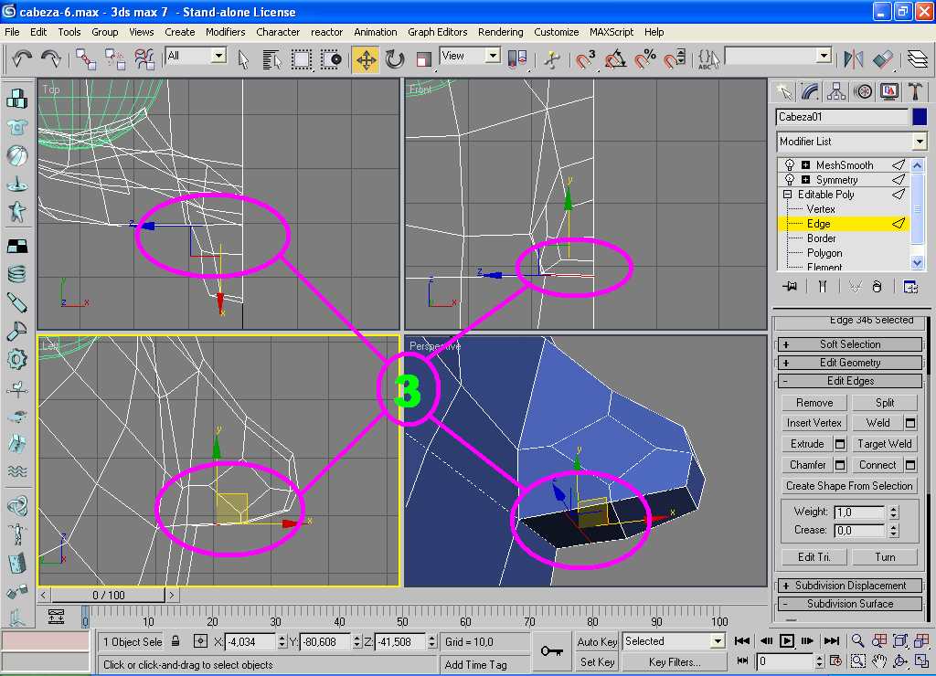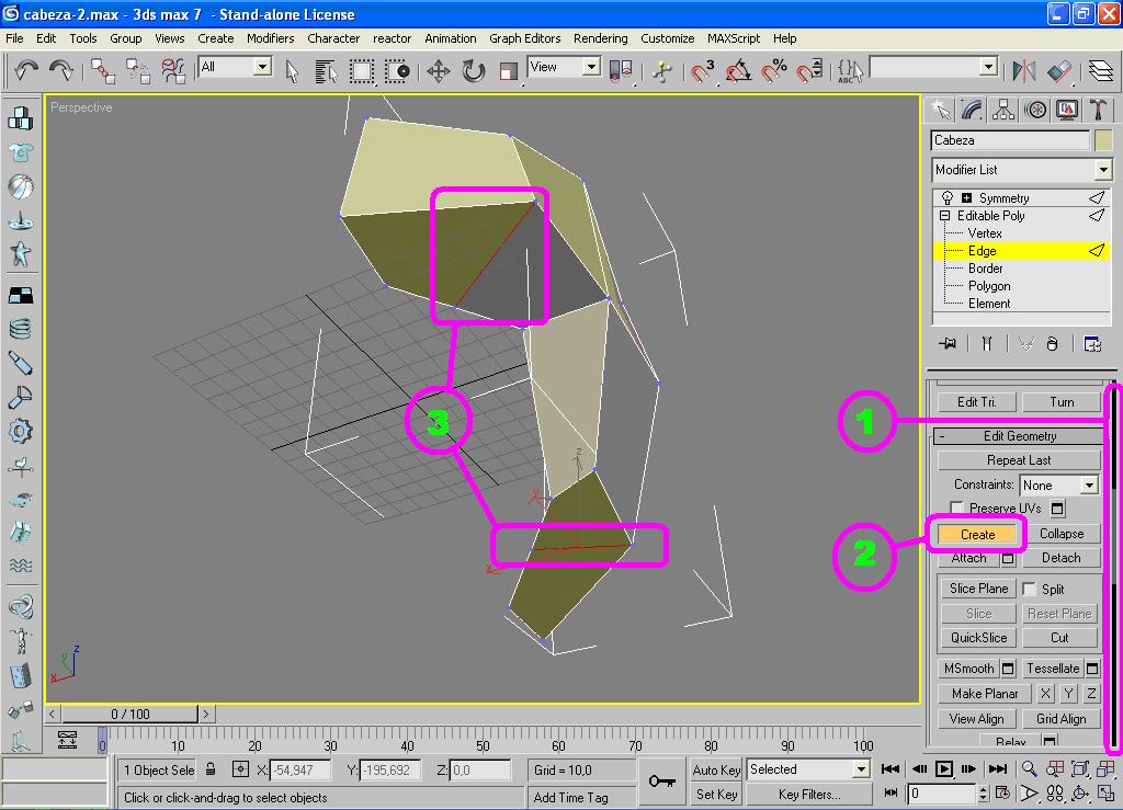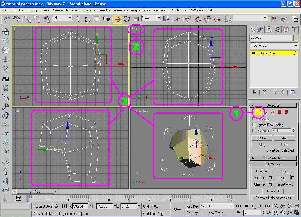 Ya que este tutorial es para principiante trataré de explicarlo más fácil posible, cada instrucción va en el orden de los números y debajo la fotografía con el número para guiarse, la primera vez que utilice un procedimiento nuevo pondré en que parte se encuentra y cómo se aplica, la segunda ves solo digo el procedimiento que hay que hacer ya que lo deben saber, ya que de esta forma no hay que explicar siempre lo mismo. Este solo es un método para modelar, existen otros, pero este es el que me parece más fácil, de todas formas, experimenten con los otros métodos para que encuentren cual se acomoda a sus gustos y habilidades. Traten de que desde el principio quede igual a las fotografías ya que a medida que se va avanzando cada vez abran más líneas y será más difícil corregir errores, vuelvan a empezar tantas veces como sea necesario hasta que quede bien no desesperen si no pueden a la primera, persistan hasta que logren ya que nadie nace aprendido bueno sin más rodeos vamos a empezar.