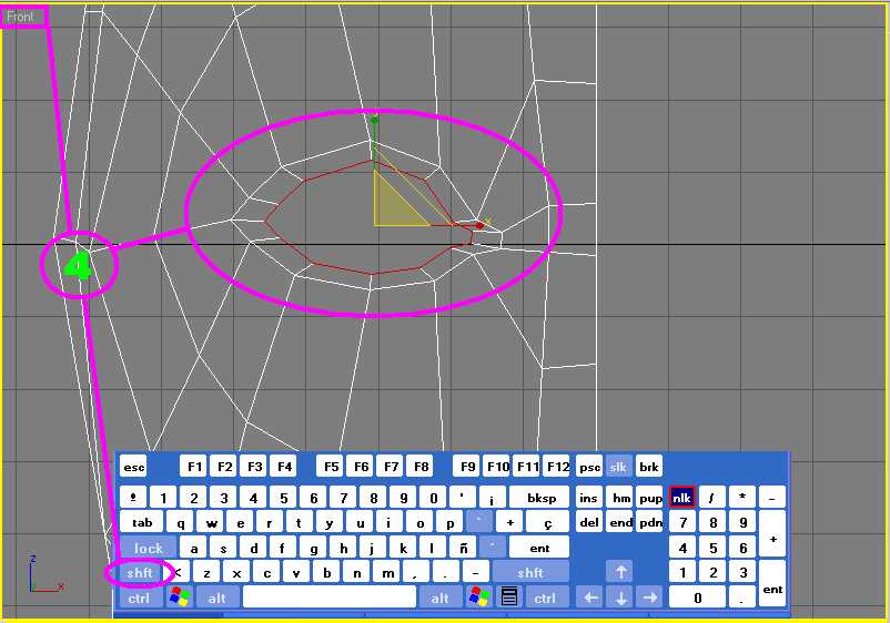 2, en la vista front mueva los vértices (puntos) hasta que tome la forma de la figura.