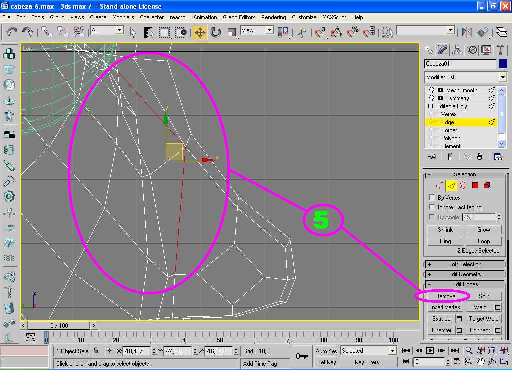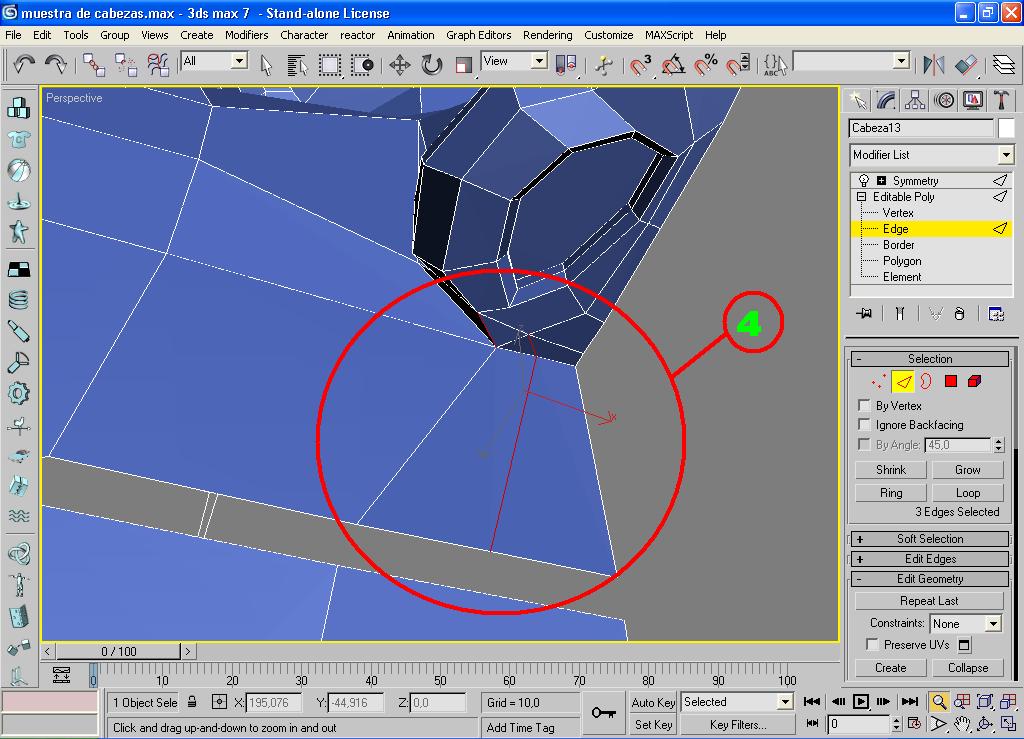 2, gire la vista perspectiva y seleccione la línea de atrás de la cabeza.