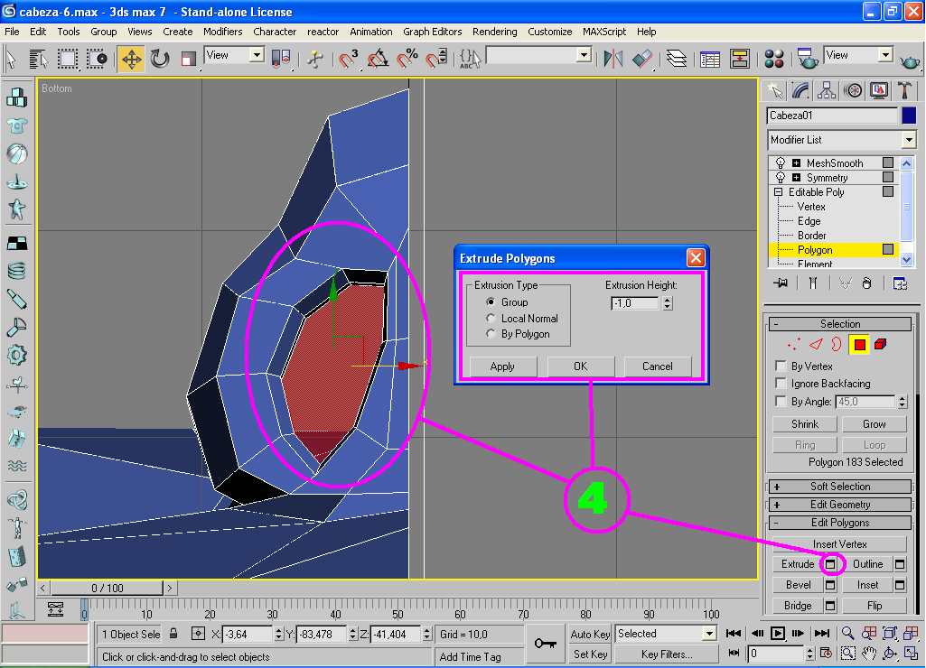 3, suprima las caras seleccionadas presionando la tecla Supr o del.