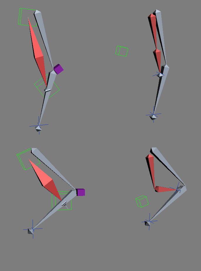 Cada uno de ellos estará en una capa distinta, de modo que al principio, al enfrentarse a la primera etapa de la animación haya en la pantalla el mínimo número de controles para que sea lo más fácil posible crear el movimiento inicial, una vez esté listo, con un timing y posturas definidos, se ocultaría esa capa y se mostraría otra con los controles específicos para refinar el movimiento y detallar la animación.