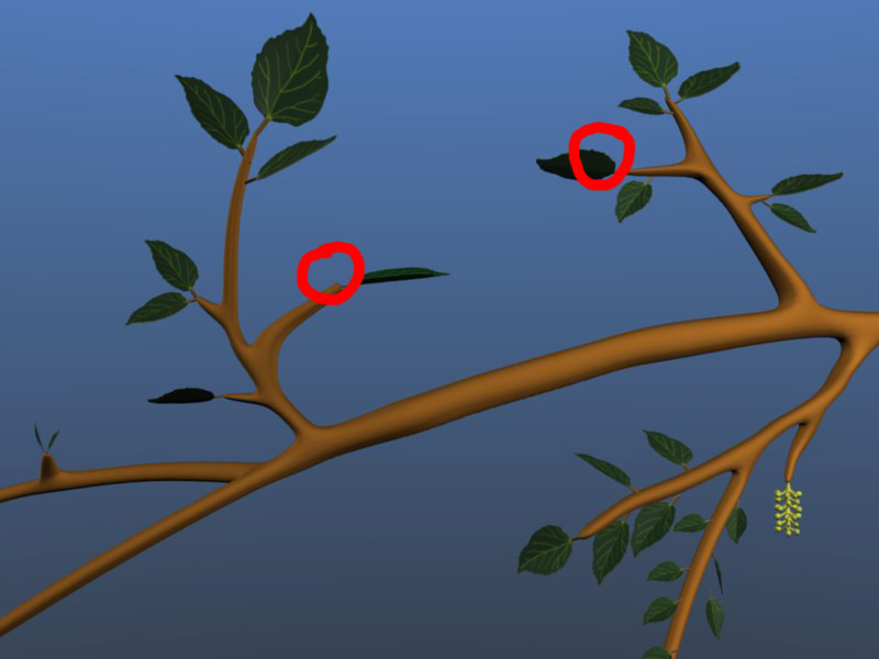 Yo personalmente veo más interesante está composición, y que con sugerir las ramas que le faltan ya las tienes, y te quitas polígonos.