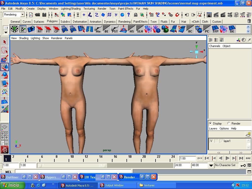 Hola a todos. Estaba practicando con el skinshading de Maya y aquí os dejo el resultado con el que acabe. Es el primer skinshader que hago y haber que tal os parece. De paso criticad también el modelado y el Shader del ojo. El pelo modele porque con el Hair de Maya me va un poco lento el ordenador y aún no está acabado. Le tengo que poner algo de transparencia en la punta da la cola para que no se vea así. No sé si se apreciará bien el render porque lo hice con 3 luces solo y intetaba meter un HDRI, pero al hacerlo el Mental Ray no quiere renderizarlo y se queda pensando incluso con las opciones de calidad en mínimo. Me seria de mucha ayuda si alguien me diga cómo resolver este problema.