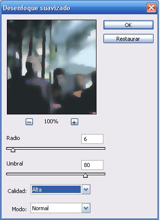 Y por último, filtro/desenfocado/desenfocado suave, como siempre con estos parámetros.