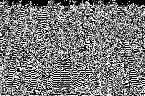 Vamos a por más filtros, filtro/desenfoque/desenfoque Gaussiano, con un radio de 2 píxeles. imagen/ajuste/umbral y lo ponemos en 120. filtro/estilizar/difusión y elegimos anisotrópico.