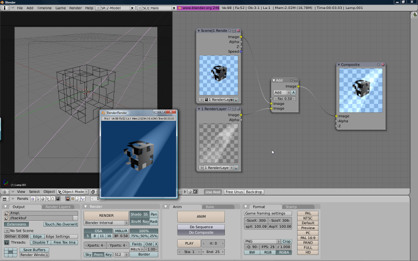 Debes poner la resolución que quieras (en f10 como siempre), pero, en ambas escenas para no perder calidad, y al final debes hacer render siempre desde la escena halo, pero de todas formas, esta escena no es para usarla, es para que aprendas cómo se hace y te montes la tuya propia. Suerte.No logro sacar el render en una imagen más grande.