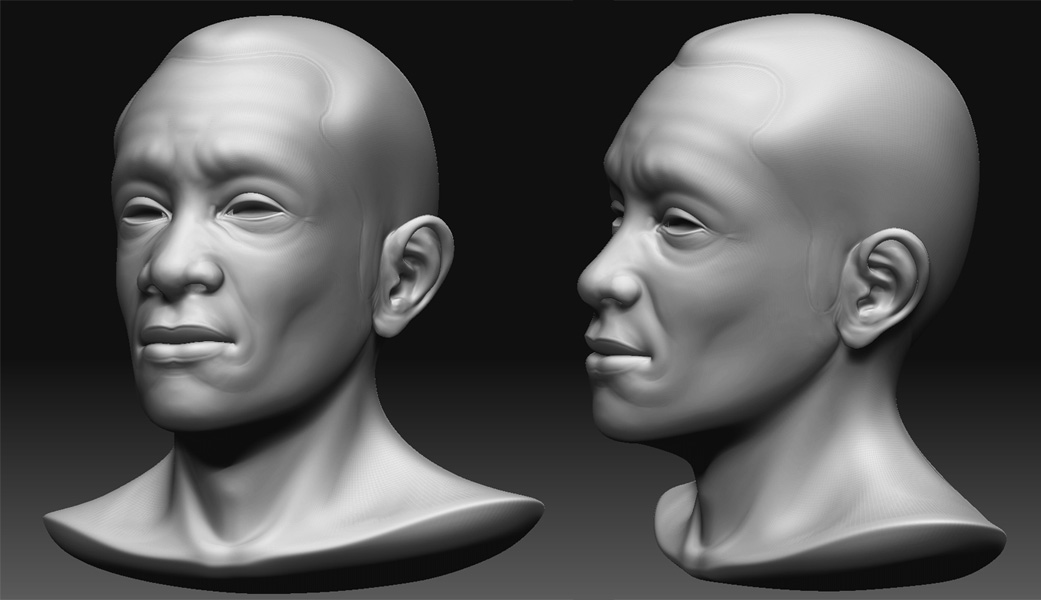 Es un muy buen comienzo, aunquehay algunas cosas raras, como la sobrexageración de volúmenes, si miras referencias veras mejor la forma en que la carne se dobla y genera arrugas más orgánicas. Y cuidado que la clavícula y los músculos del cuello esta incorrectos, también revisa proporciones, un milímetro de más, en una cara realista, se aprecia. En general es un muy buen trabajo: con textura seria bastante creíble.