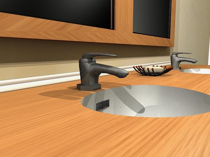 Juan Manuel, lo mismo que Shazam te digo. Trabaja un poco más el modelado si quieres conseguir fotorrealismo. Es muy raro ese lavabo con esa arista tan fuerte en la mesa. Y mira las barras metálicas de los reposabrazos. Necesitan más segmentos a lo largo para que sea más suavizado. Venga dale caña. Saludos.