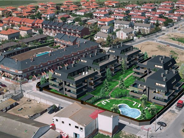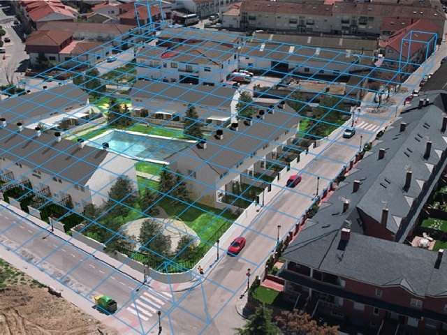La perspectiva de la 2ª fotografía aérea me parece que está algo exagerada, al menos en la fila de casas de la derecha, la que da a la calle del centro de la fotografía, parece que se van haciendo pequeñas demasiado rápido. Igual solo veo yo así. Un saludo.
