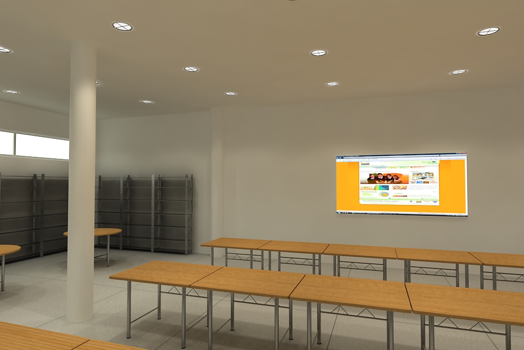 Saludos amigos. Este trabajo que estoy realizando es una biblioteca con pizarron interactivo, sé que falta ambientación y mobiliario.