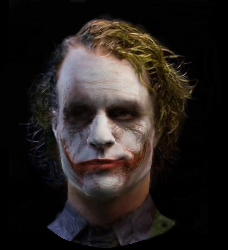 He vuelto con el Joker. Soy un hombre de palabra, que buena es la película, impresionante, la he visto dos veces ya, bueno a lo que vamos, después de rebanarme el seso estos días con una mejor aplicación de mapas difusos y que la textura del Unwrap fuera buena, lo he mejorado mucho, no como la patata de textura que tenía antes, creo que casi casi es el definitivo, creo que está técnica de Unwrapear con fotografías en ZBrush y después pasarme los mapas a 3dsmax y renderizarlos con Vray voy a seguir en los próximos trabajos, porque da resultados espectaculares, ojo, el pelo es un montaje en Adobe Photoshop con una fotografía del Joker muy mala calidad, porque no hay buenas de la película, lo he hecho así porque el pelo es imposible hacerle todos los rizos en ZBrush y cargarlo de esa manera de polígonos, pero todo lo demás es 3d, al final le he añadido un cuello y una parte de la camisa, bueno os dejo el casi definitivo Joker.