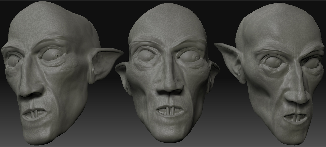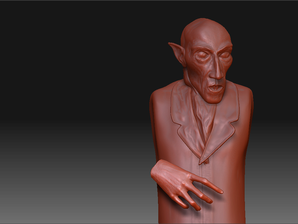 Hola, desde hace un tiempo no publico nada, lo último también fue en esta sección y era el primer jeto que saque con ZBrush, después de las vacaciones me he decidido a aprender en serio y este es mi tercer intento, la escena es de unas 10 horas, en las que he aprendido un huevo así que, es como si hubieran sido 10 minutos, bueno como durante un dos días por una emergencia tendré que trabajar en la farmacia tardaré un poco en acabarlo, el reto es modelar de busto un Nosferatu, como el de la primera referencia, con la mano retorcida, me encanta esa fotografía, además aun me queda trabajar más la cara para poder sacar algún render más de cerca, yo de momento veo que le faltan arruguillas, la nariz brilla(parece de un joven) la frente muy tersa y diversos fallos más, bueno os adjunto las imágenes, pondré más referencias interesantes.