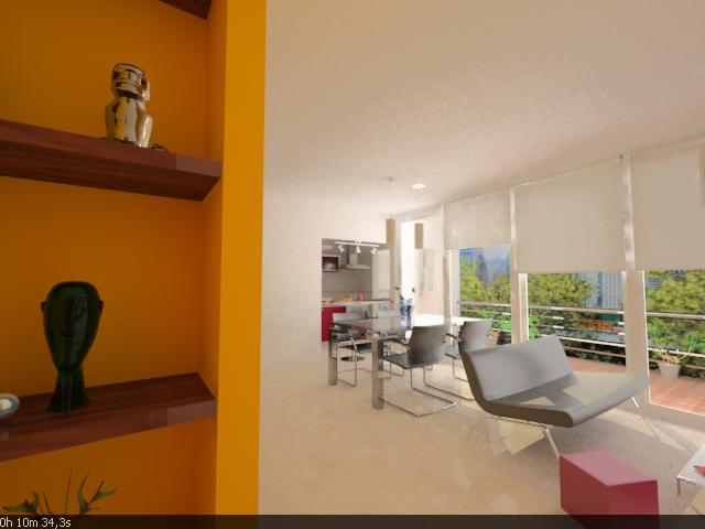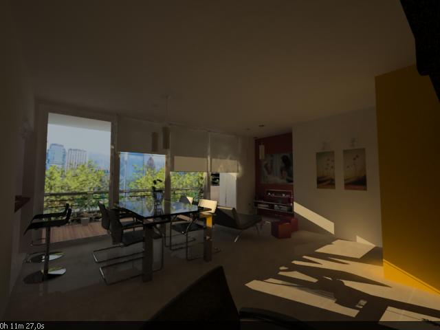 Les comento un poco lo que estoy haciendo, es un departamento levantado en CAD y luego pasado a 3ds Max 9, Vray 1.5.