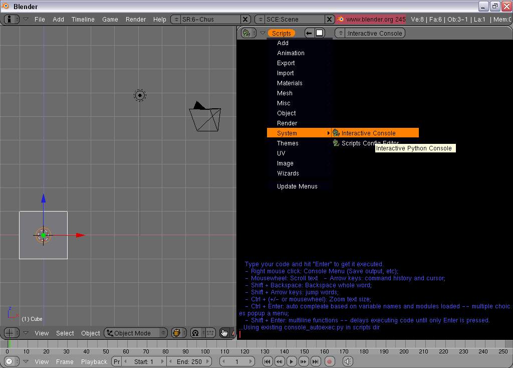 Mh yo andaba un poco perdido y confundido de consola. Más información sobre lo que comenta jehide aquí: blender projects: Blender 2.4x fundación Blender release: detail: 4137 integrate the console output into Blender UI as a new space type.
