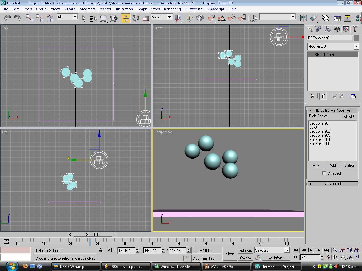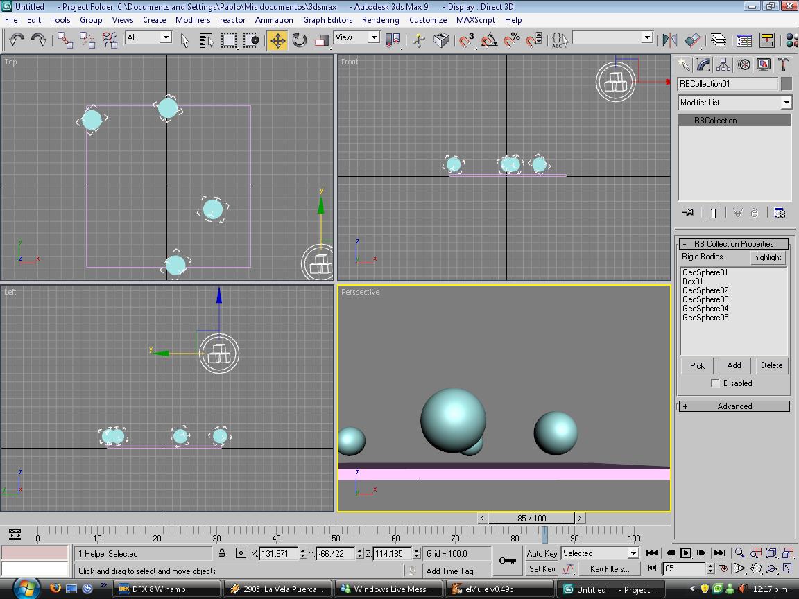Saludos gente. Verán, estoy usando esta herramienta del 3ds y tengo una dificultad. Cuando creo la animación, como, por ejemplo, en este caso algunas esferas y una base, el reactor me deja un espacio a la vuelta de los objetos involucrados en la animación.