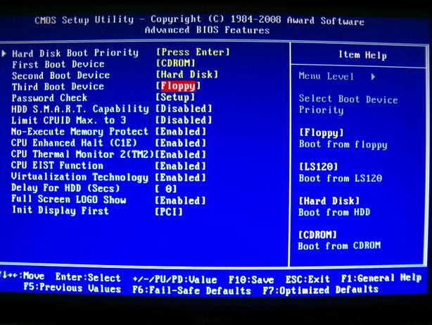 He entrado en la Bios y en first boot device le di al disco duro y nada. Lo intenté luego como primero en arrancar con la lectora y tampoco.