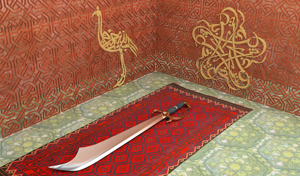 No sé si será una cimitarra porque la verdad no la he copiado de ningún lugar es pura invención, lo único los símbolos y que no sé qué significan los vi me gustaron y los modelé. Saludos.