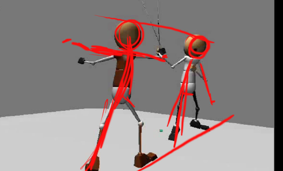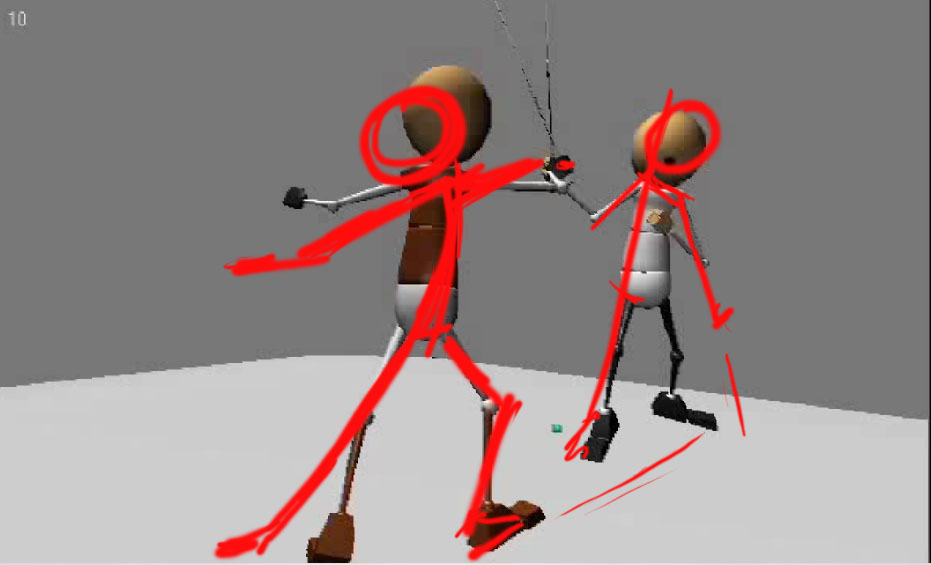 Edito: voy a subir una imagen, bueno y decir que, aunque parezca corta y poco trabajosa he articulado los dos muñecos en 23 frames, que entre los dos sumarían 46 posturas realizadas, que eso, aún tengo que retocar hasta que me guste.