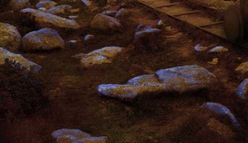 Duplicas la capa, la das un tono azul para sacar especulares, y vas borrando en esa capa los brillos, si lo haces con gusto puedes sacar brillos en las rocas de primer plano, que es lo que más hecho en falta.