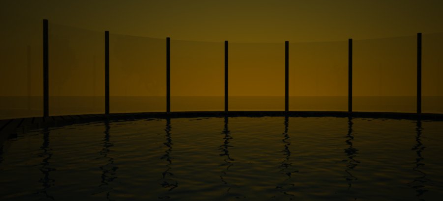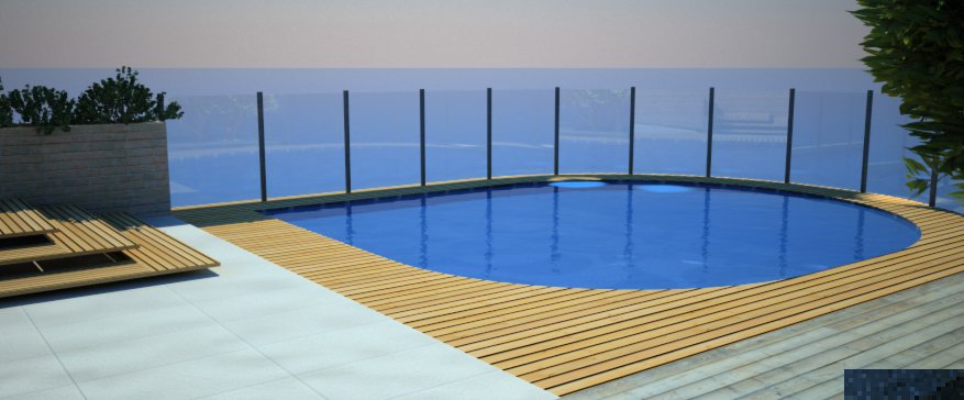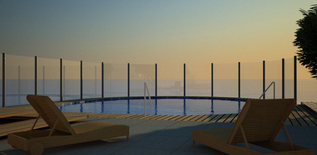 En la imagen de día que se ve la pileta más de arriba, es posible que esos manchones de luz que hay en el agua sean como reflejos de los vidrios de atrás? Tengo solo un Vray Sun. Saludos a todos.