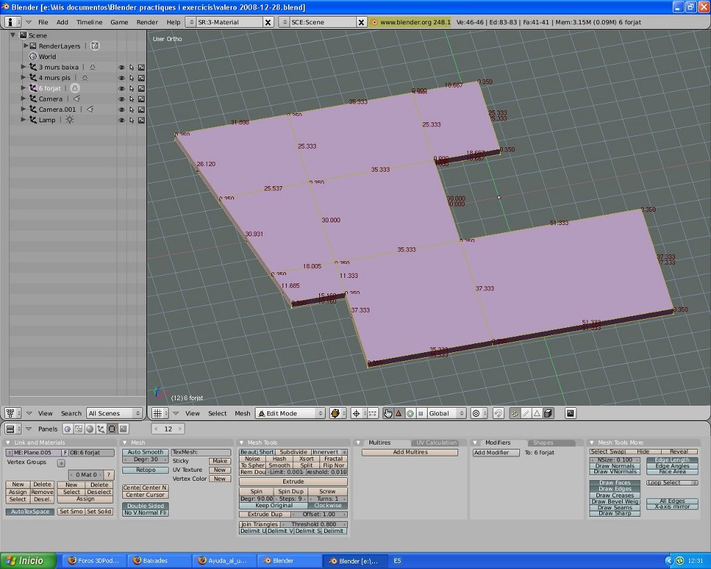 Probando cosas he insertado un plano, lo he extruido a la dimension del anterior, los he juntado y los he separado y ahora salen bien las distancias de las aristas.