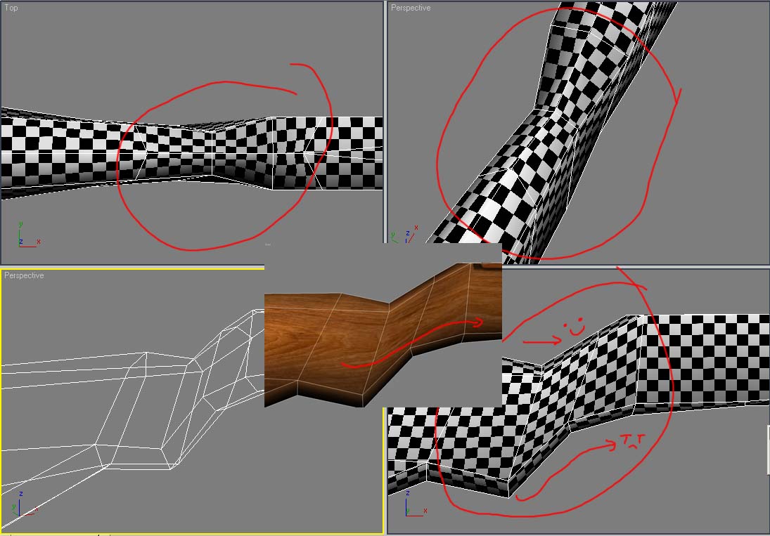 Hola saludos y feliz año nuevo a todos y todas. Ando intentando texturizar un arma, pero a la hora de hacer las UVS, se me deforma la textura y la madera se mueve en una forma que según yo no debería pasar.