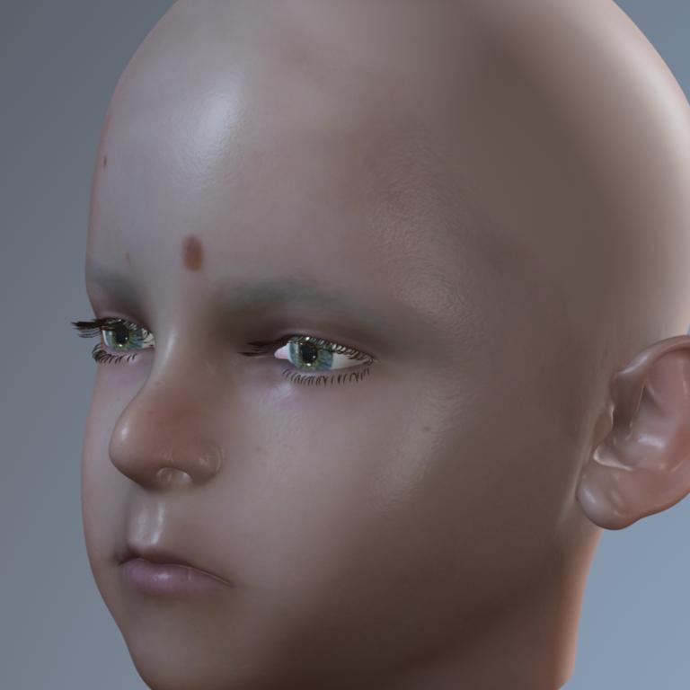 Muchas gracias por sus comentarios, la verdad es que se parecía más, pero al momento de convertirla en superficie de subdivisión, se perdieron algunos rasgos, ya le saque un poco los pómulos, y los poros, si los tiene, pero muy inapreciables porque al ser una niña de cinco años tiene la piel muy tersa.