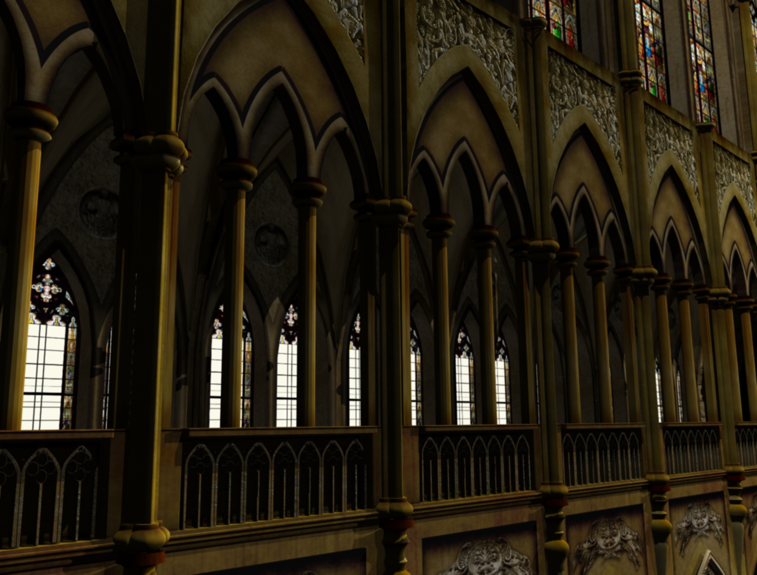 Hola. Como hace tiempo que los tengo olvidados(puede que sea porque nunca me llego la remera del segundo concurso 3d poder), cuelgo una catedral que tengo abandonada, pero intento terminar.