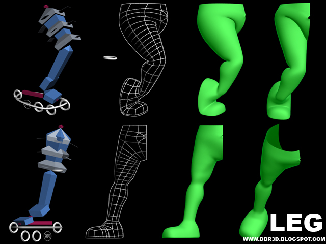 Lo último es el Rig y el skin de una pierna, aquí se puede ver el video. http://dbr3d.blogspot.com/2009/06/ri...otrollfot.html. Saludos.