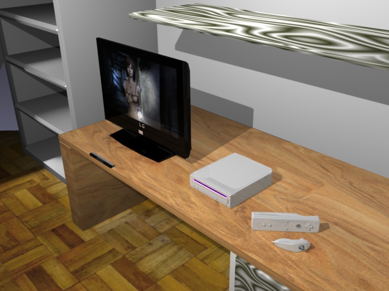 Lo de las esquinas lo resolví un poco. Gracias por el apunte Mars. Aquí un nuevo render ya con la consola Wii (aún sin acabar).