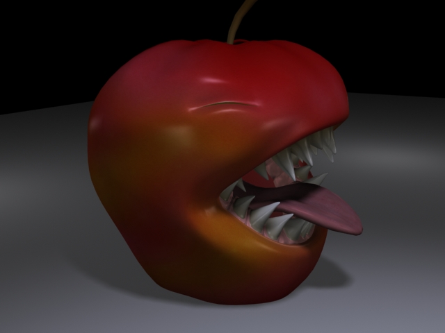Parece más un tomate que una manzana. Y las sombras proyectadas están un poco feas.