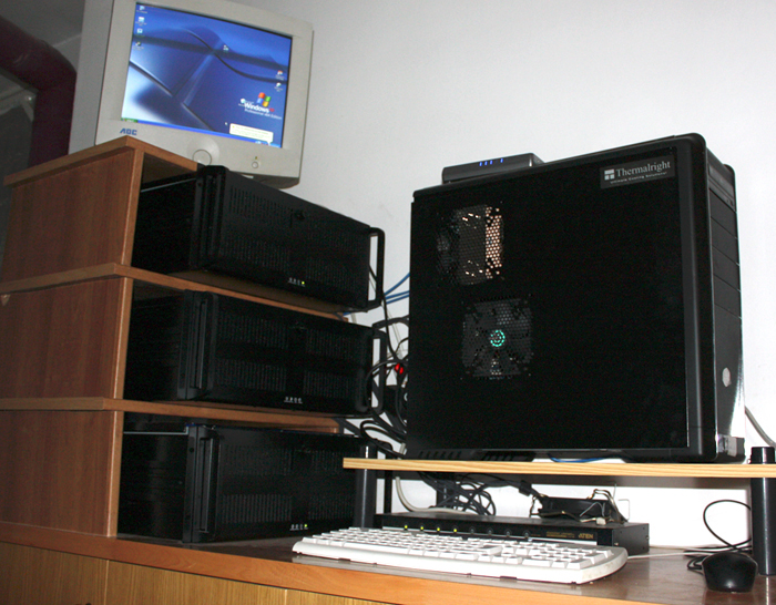 Granja de render compuesta por 4 PC (3 en rack+ 1 torre ATX.