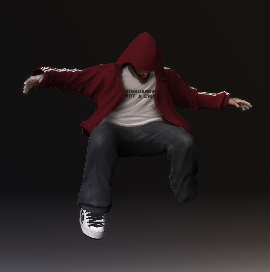 Bueno yo se muy poco, pero lo que le veo no tan bueno cono el resto son las manos y la cara del skater. La piel está muy blanca, fíjate si logras un material mejor.