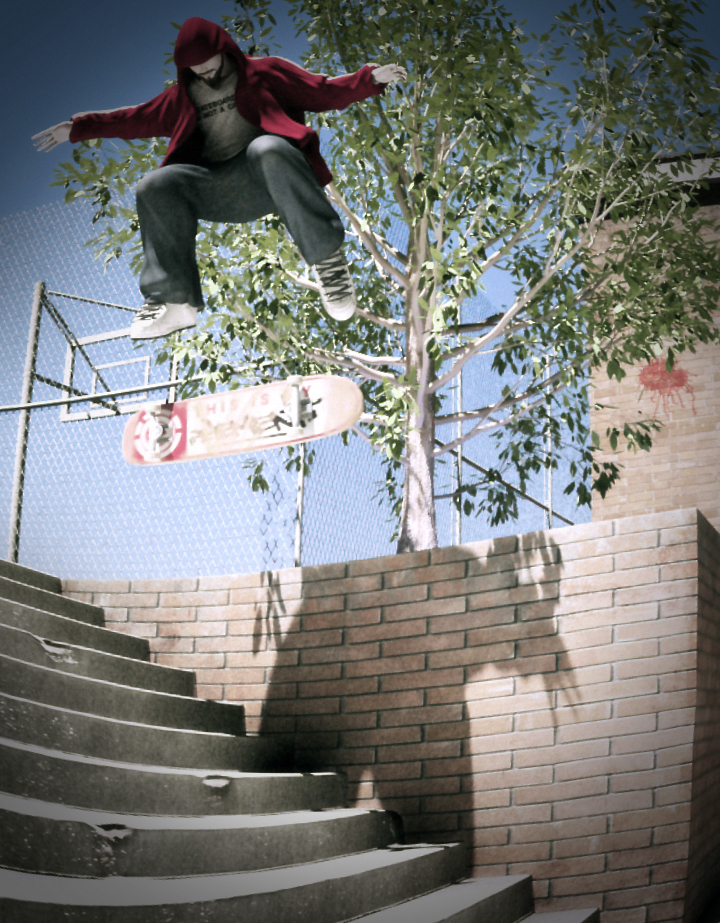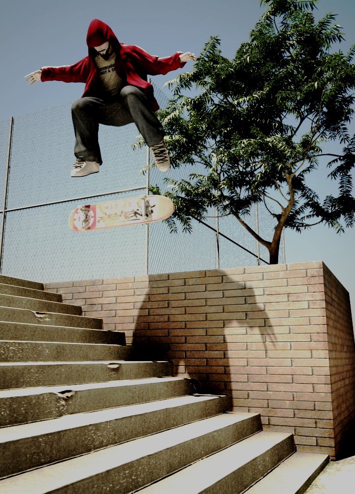 Muy buen proyecto, me encanta ese deporte, aunque ya no lo practique de años, me gustaría que se quemara menos la skateboard par ver los detalles de las stickers y todo eso, además un poco de Motion Blur en el fondo creo que le ayudaría a la composición final, saludos.