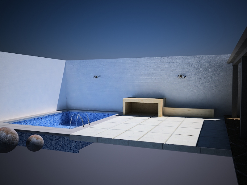 Hola. Pues la verdad no entendí que es lo que tengo que hacer para hacer que no halla reflexión en muros. En esta, le quite el agua y el muro sigue teniendo el color azul ahora del mosaico de la alberca.