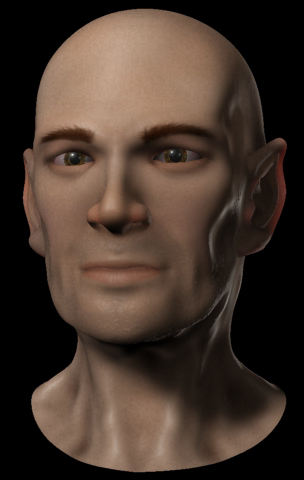 Sí, estoy usando un Specular map, aunque no es realmente definitivo. Todas las texturas (Diffuse, speculares y bumps) están hechas con Adobe Photoshop y el material de piel es Mental Ray. La verdad es que no me estoy complicando mucho la vida. Y el mentón sí es muy ancho y, de hecho, ya está retocado en ZBrush.