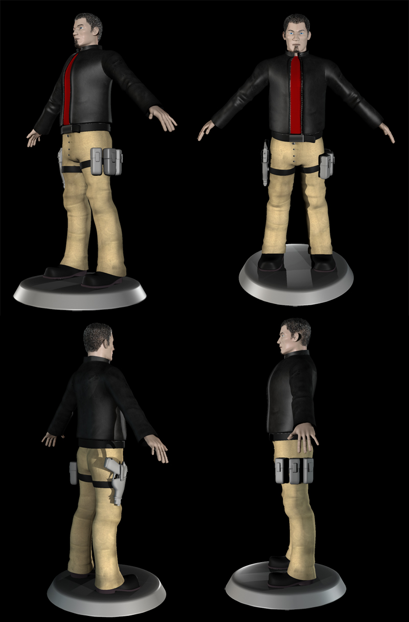 La cara aún no tiene texturas, simplemente tiene el material. Únicamente están texturizados la chupa (difusa-Bump) y los pantalones(difusa).