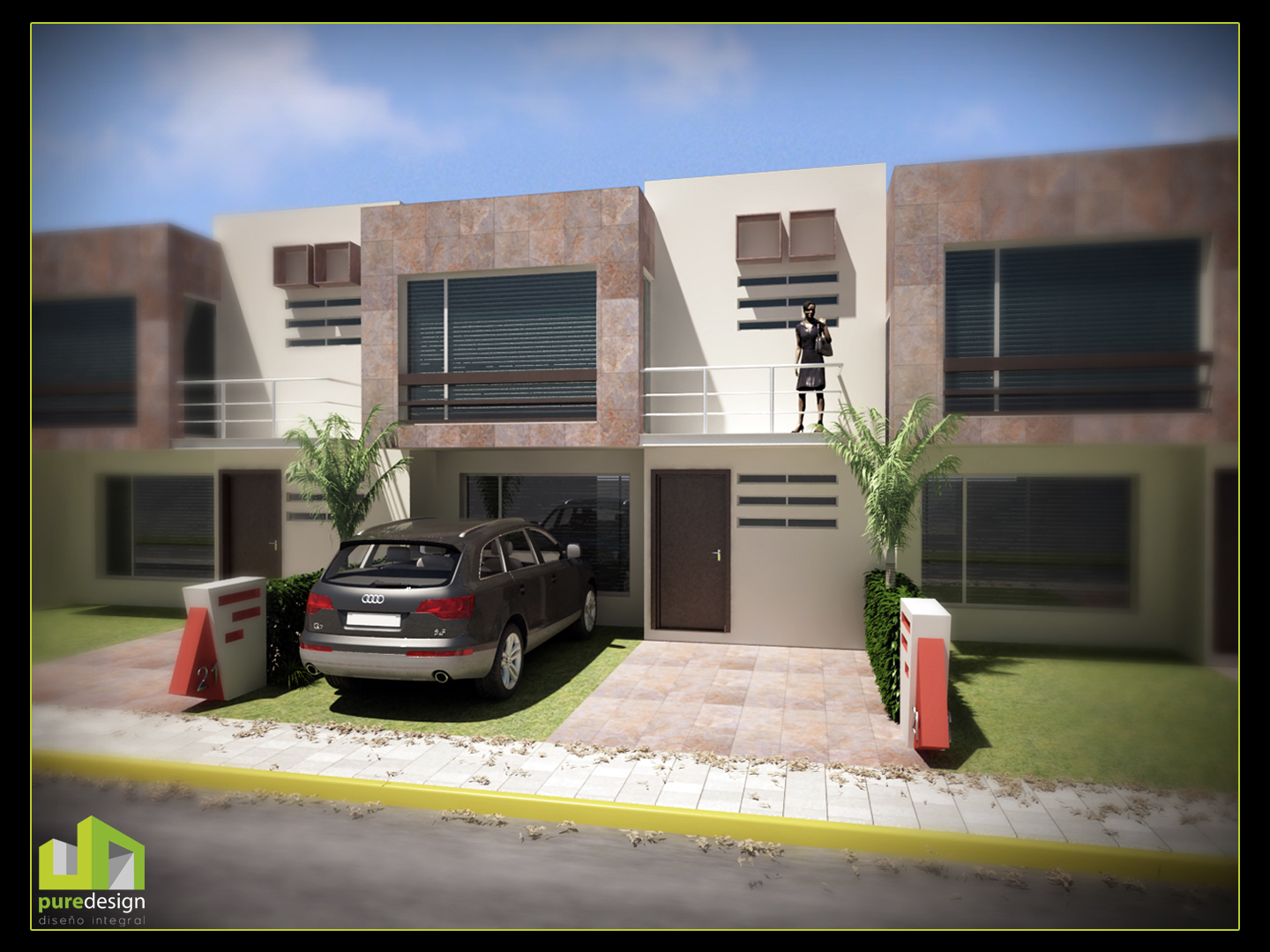 Este es mi segundo trabajo de exteriores de un conjunto habitaciónal. Como el modelo era realmente muy sencillo traté de que la iluminación impactara, así lo presento de día y de noche.