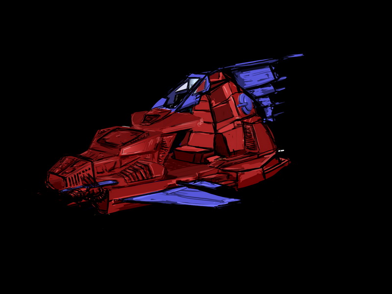Delineado básico de la forma que tendrá el vehículo cuando este transformado en una nave.
